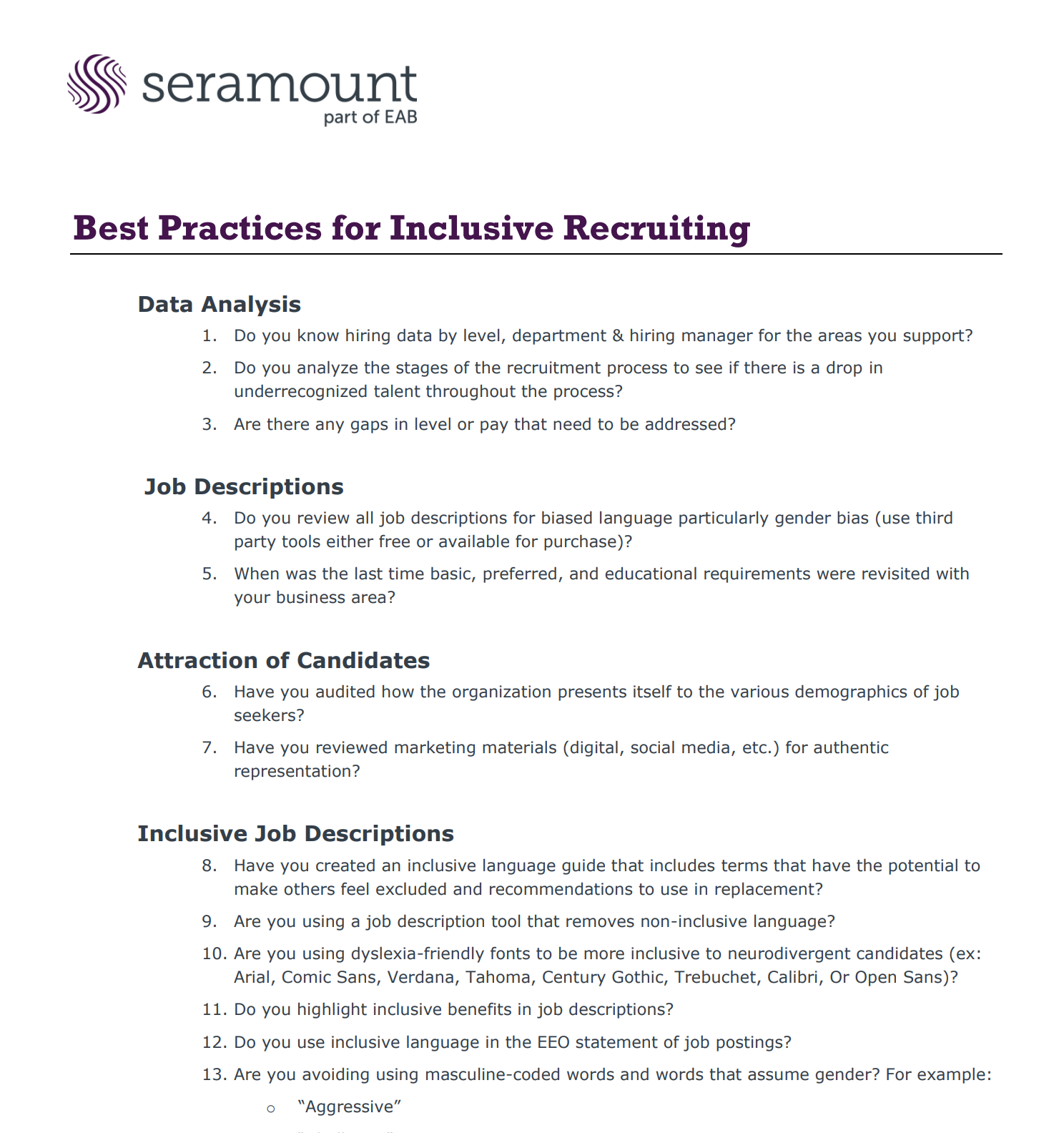 Best practices for organizations to consider for their inclusive recruitment strategy.