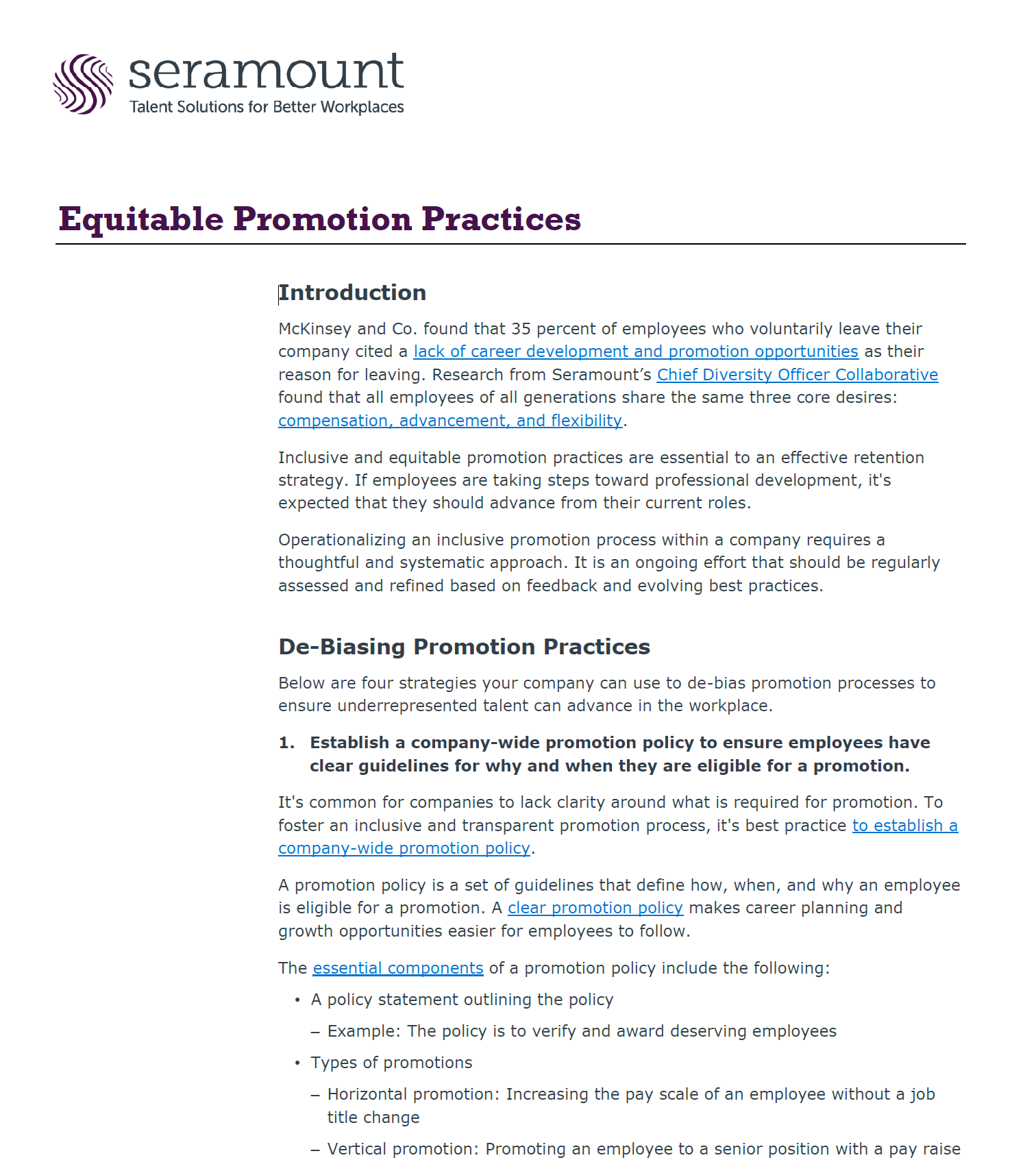 Inclusive and equitable promotion practices are essential to an effective retention strategy. If employees are taking steps toward professional development, it’s expected that they should advance from their current roles.